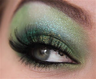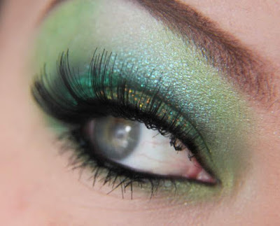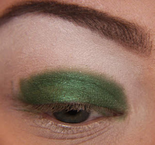 Agora, aplique sombra verde floresta em toda sua pálpebra móvel, como mostra a foto acima.