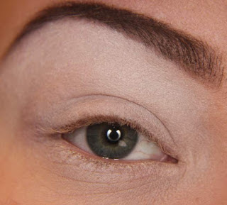 Antes de começar é sempre bom lembrar, que a pele precisa ser preparada para receber a maquiagem, com base, corretivo e pó. Aqui nessa foto, após essa preparação, aplique o primer em toda a pálpebra móvel.