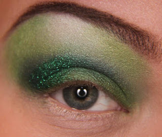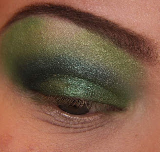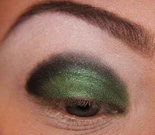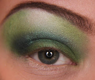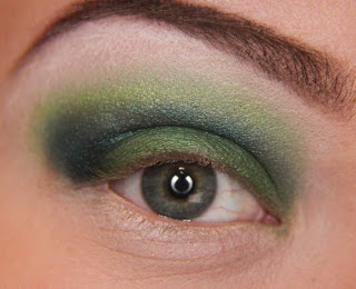 Agora nessa etapa aplique um tom de verde escuro e marque bem o côncavo enfumando bem, como na foto acima.