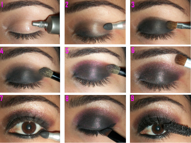 2. Em seguida, passe um lápis preto macio na pálpebra móvel e esfumei com a esponjinha dele ou com pincel de esfumar, essa base faz com que a sombra fique mais pigmenta;
